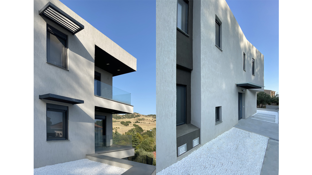 Πρόκειται για μια μονοκατοικία με συνολικό εμβαδό 300τμ στο Λευκώνα Σερρών, κτισμένη σε οικόπεδο μεγάλης κλίσης η οποία στεγάζει μια πενταμελή οικογένεια. Αρχικό ζητούμενο ήταν η ανοικοδόμηση μιας κατοικίας «λιγότερο ενεργοβόρας». Σε πρώτο στάδιο η κατοικία σχεδιάστηκε με τις αρχές της Βιοκλιματικής Αρχιτεκτονικής ενώ κατά την διάρκεια του σχεδιασμού μετατράπηκε σε Παθητική κατοικία. Με λίγα λόγια η μορφολογία του οικοπέδου, ο σωστός προσανατολισμός του κτιρίου και η τοποθέτηση χώρων σε αυτό σε συνδυασμό με τις αναλογίες ανοιγμάτων-συμπαγών στοιχείων κατέστησαν πιο εύκολη την μετατροπή της σε Παθητική όπου και βελτιστοποιήθηκε ο τελικός σχεδιασμός με σκοπό την μέγιστη εξοικονόμηση ενέργειας παράλληλα με την κάλυψη των αναγκών της οικογένειας. Στο κτίριο λόγω της μεγάλης κλίσης του οικοπέδου η κύρια είσοδος πραγματοποιείται από την δυτική πλευρά του 1ου ορόφου που τοποθετούνται η κουζίνα με το καθιστικό και ένα γραφείο, ενώ στο 2ο όροφο τοποθετούνται οι αμιγώς ιδιωτικοί χώροι, τα υπνοδωμάτια και οι αντίστοιχοι χώροι υγιεινής. Στο ισόγειο, που είναι και σε επαφή με το ανατολικό εξωτερικό διάζωμα βρίσκεται το καθιστικό με το τζάκι, ενώ επιπλέον διαθέτει ένα αυτόνομο δωμάτιο-ξενώνα και ένα στούντιο ηχογράφησης. Ο περιβάλλοντας χώρος διαμορφώνεται με δύο διαζώματα σε διαφορετικά επίπεδα που ακολουθούν την κλίση του οικοπέδου ενώ ένα μεγάλο του κομμάτι παρέμεινε όπως ήταν αρχικά με τον ελαιώνα του χωρίς κάποια διαμόρφωση.