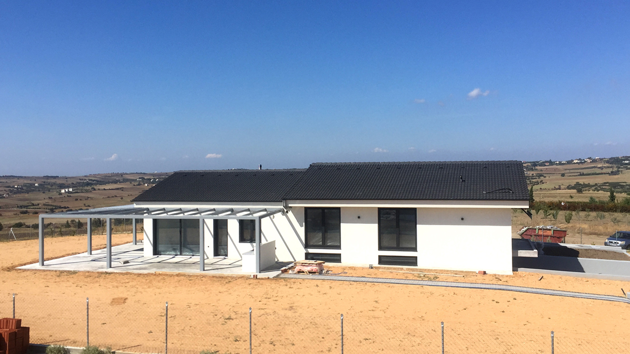 Πρόκειται για μία ισόγεια μονοκατοικία με υπόγειο που στεγάζει μια τετραμελή οικογένεια.Η επιφάνεια του κάθε επιπέδου της κατοικίας είναι 200τμ εκ των οποίων μόνο τα 240τμ αφορούν θερμαινόμενους χώρους. Στο ισόγειο αναπτύσσονται σχεδόν όλοι οι απαραίτητοι χώροι μιας κατοικίας όπως καθιστικό, κουζίνα – τραπεζαρία, δωμάτια και οι χώροι υγιεινής τους, ένα γραφείο και ένας αποθηκευτικός χώρος ενώ στο υπόγειο διαθέτει ένα αυτόνομο δωμάτιο-ξενώνα. Οι υπόλοιποι χώροι του υπογείου που βρίσκονται εκτός θερμικού φακέλου και αποτελούνται από το πάρκινγκ, μια αποθήκη και από ένα αμόνωτο κελάρι για την ωρίμανση και αποθήκευση κρασιών του οποίου τα δομικά στοιχεία έρχονται σε άμεση επαφή με το υπέδαφος χωρίς την παρεμβολή κάποιας μόνωση. Κατά την διάρκεια της μελέτης παθητικής κατοικίας, μελετήθηκε ο αρχικός σχεδιασμός του κτιρίου οπού στην συνέχεια βελτιστοποιήθηκαν τα ανοίγματα και οι σκιάσεις τους, επιλέχθηκαν σωστά υλικά δόμησης, μόνωσης και κουφώματα, ελαχιστοποιήθηκαν οι θερμογέφυρες και ακολούθησε μελέτη εφαρμογής, οπού αντιμετωπίστηκε σε βάθος η πολυπλοκότητα των αναγκών έχοντας ως τελικό σκοπό να δοθούν ενεργειακά αποδοτικές λύσεις.